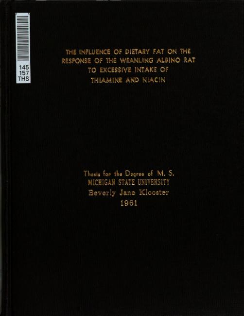 The influence of dietary fat on the response of the weanling albino rat to excessive intake of thiamine and niacin