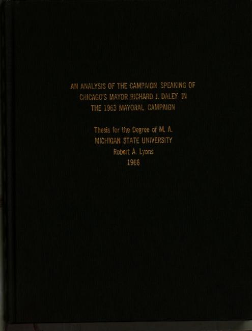 An analysis of the campaign speaking of Chicago's Mayor Richard J. Daley in the 1963 mayoral campaign