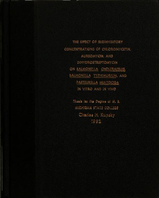 The effect of subinhibitory concentrations of chloromycetin, aureomycin, and dihydrostreptomycin on Salmonella choleraesuis. Salmonella typhimurium, and Pasteurella multocida in vitro and in vivo