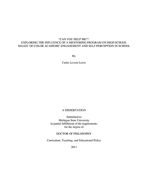 "Can you help me?" : exploring the influence of a mentoring program on high school males' of color academic engagement and self-perception in school