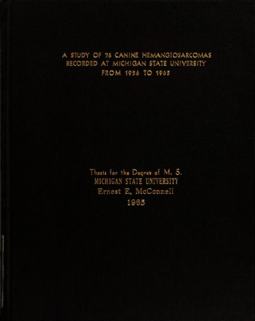 A study of 76 canine hemangiosarcomas recorded at Michigan State University from 1956 to 1965