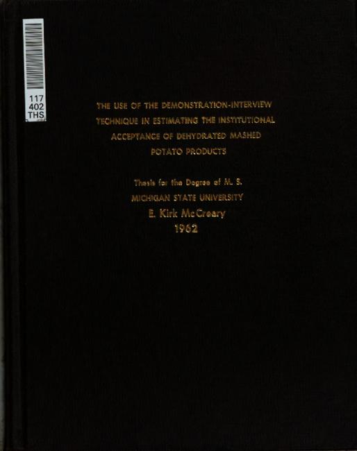 The use of the demonstration-interview technique in estimating the institutional acceptance of dehydrated mashed potato products