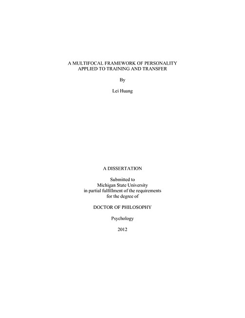 Personality traits are widely used in organizational psychology as a lens to understand the person and to make predictions about work-related outcomes. The trait approach relies on individuals' typical behavioral tendencies and ignores behavioral variation across contexts and situations. The purpose of this dissertation is to propose a multifocal personality framework that enhances the understanding of the person as a whole and increases precision in prediction. The framework proposes that three foci consist of a person's personality system, ranging from the most general level, to the moderate contextualized trait level, to the most specific task/state level. The personality framework is applied in the training context to propose hypotheses about using contextualized and specific traits to predict learning and transfer above and beyond global traits and to implement an intervention to enhance learning and transfer. Results suggest that the personality-based intervention interacts with trainee characteristics to affect learning. Implications and future research directions are discussed.