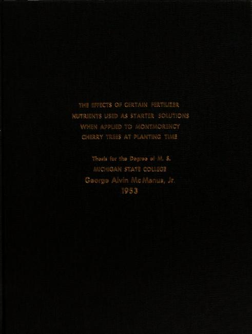 The effects of certain fertilizer nutrients used as starter solutions when applied to Montmorency cherry trees at planting time