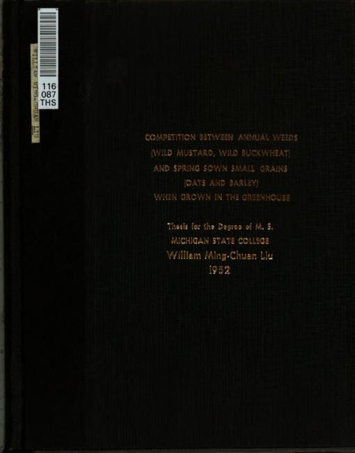 Competition between annual weeds (wild mustard, wild buckwheat) and spring sown small grains (oats and barley) when grown in the greenhouse