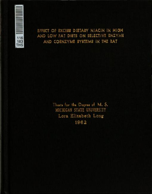 Effects of excess dietary niacin in high and low fat diets on selective enzyme and coenzyme systems in the rat