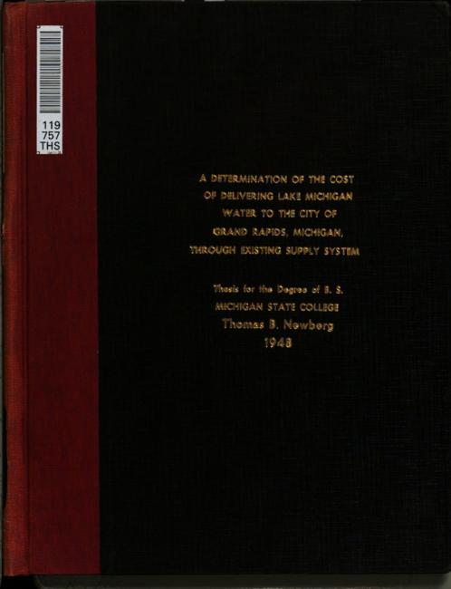 A determination of the cost of delivering Lake Michigan water to the city of Grand Rapids, Michigan, through existing supply system