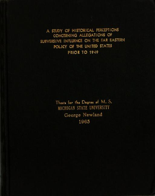 A study of historical perceptions concerning allegations of subversive influence on the Far Eastern policy of the United States prior to 1949