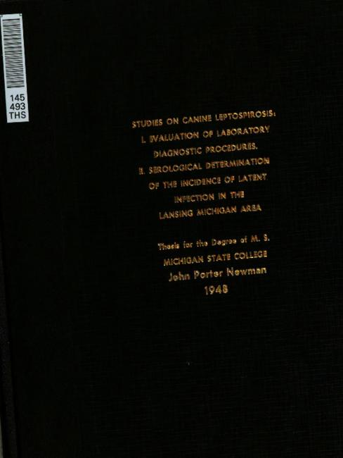 Studies on canine leptospirosis: I. Evaluation of laboratory diagnostic procedures. II. Serological determination of the incidence of latent infection in the Lansing, Michigan area