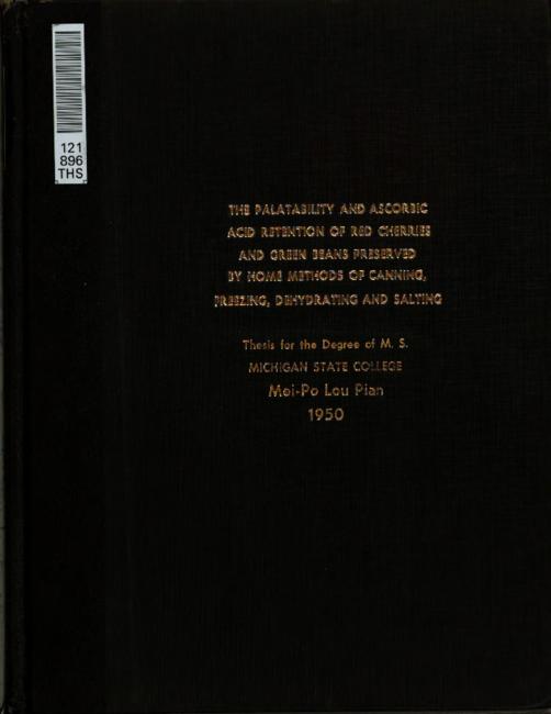 The palatability and ascorbic acid retention of red cherries and green beans preserved by home methods of canning, freezing, dehydrating and salting