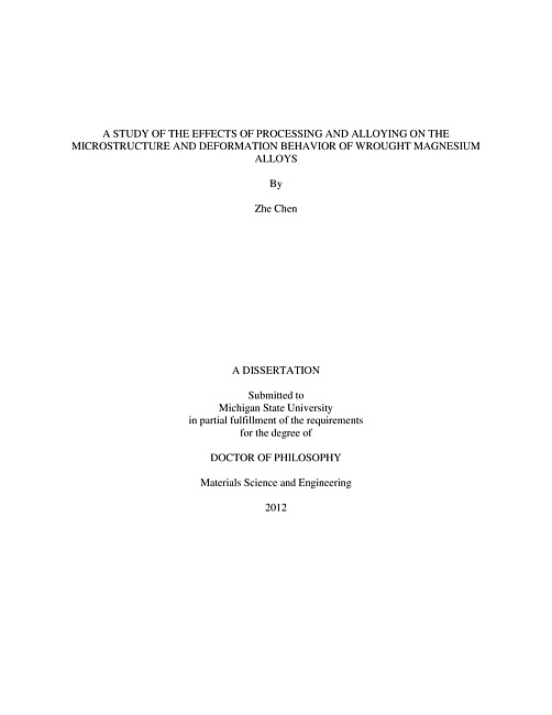 A study of the effects of processing and alloying on the microstructure and deformation behavior of wrought magnesium alloys