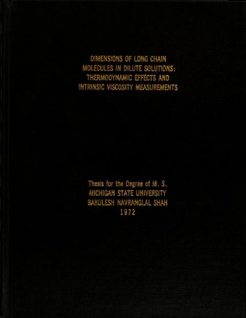 Dimensions of long chain molecules in dilute solutions : thermodynamic effects and intrinsic viscosity measurements