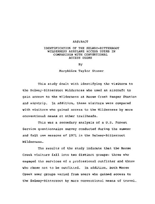 Identification of the Selway-Bitterroot Wilderness airplane access users in comparison with conventional access users