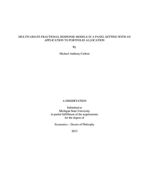 Several papers use subjective survival probabilities as a measure of mortality risk in studying economic behavior. The first chapter "Wealth Holdings, Asset Allocation and Mortality: A Test of the Information Content of Subjective Survival Probabilities" studies whether subjective survival probability measures contain any additional information that can explain differential wealth holdings and asset allocation among households. We find some evidence that survival probabilities can explain differences in household wealth holding and allocation once we control for other factors that affect decision-making. We also find that the estimated impact of subjective survival is sensitive to the inclusion of reported survival probabilities of one.Some fractional response variables, like the proportion of financial wealth allocated across multiple assets, must satisfy an adding up restriction. In the second chapter "A Model for Multivariate Fractional Responses with an Application to Asset Allocation", we develop a two-step procedure where we estimate a model with multiple fractional response variables exploiting the fact that these variables sum to one in each period and are correlated over time. The first step entails estimation of the multivariate fractional responses using the multinomial quasi-likelihood function which explicitly imposes the adding-up restriction and the second step uses the Classical Minimum Distance estimator to account for serial correlation.Many panel data estimators implicitly assume that we have a balanced panel at our disposal. Unfortunately this is rarely the case and dropping observations is an unsatisfactory solution to the problem. Estimation of fractional responses in a panel requires assumptions about the distribution of the unobserved effect and its relationship with observables, which requires special treatment in an unbalanced panel. In the third chapter, "Estimation of a Multivariate Fractional Response Model with Unbalanced Panel Data", we extend the approach in Wooldridge (2010) to the case of multiple fractional responses and apply this to unbalanced panel data on the allocation of financial wealth across several assets.