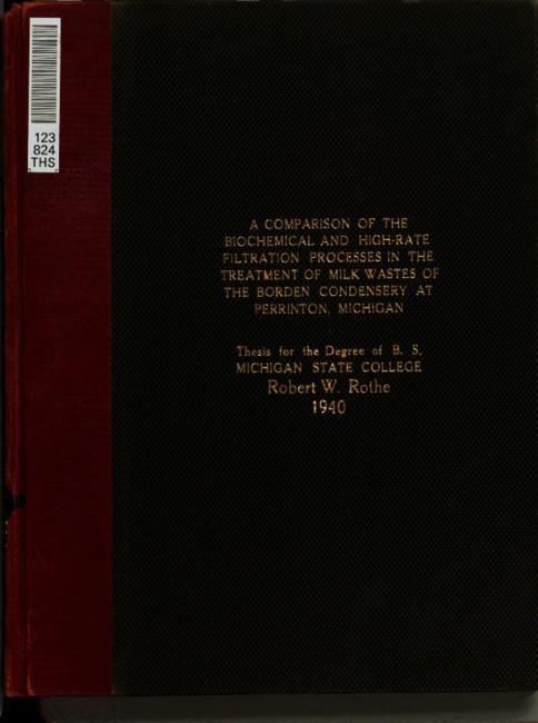 A comparison of the biochemical & highrate filtration processes in the treatment of milk wastes of the Borden condensery at Perrinton, Michigan