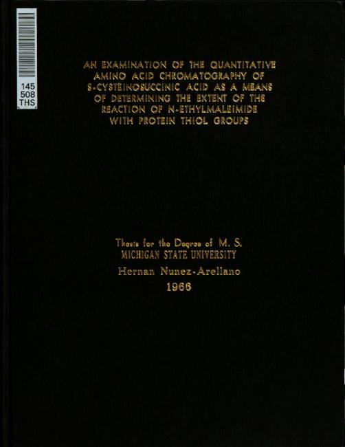 An examination of the quantitative amino acid chromatography of S-Cysteinosuccinic acid as a means of determining the extent of the reaction of N-Ethylmaleimide with protein thiol groups
