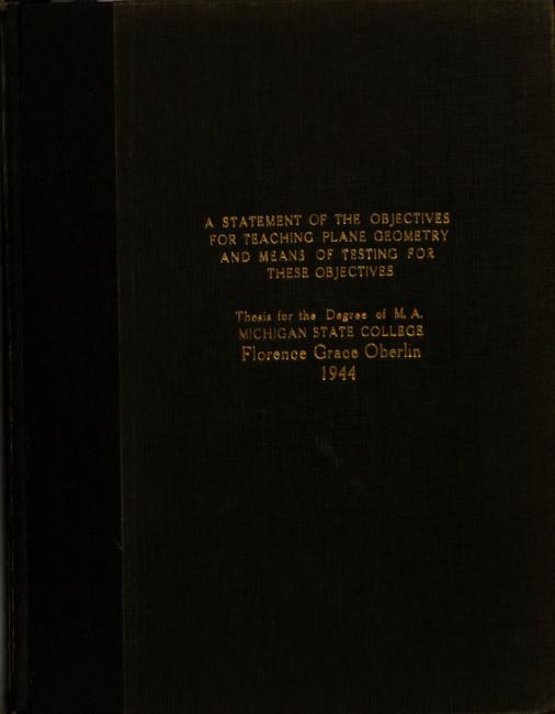 A statement of the objectives for teaching plane geometry and means of testing for these objectives
