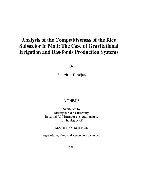 Analysis of the competitiveness of the rice subsector in Mali : the case of gravitational irrigation and bas-fonds production systems