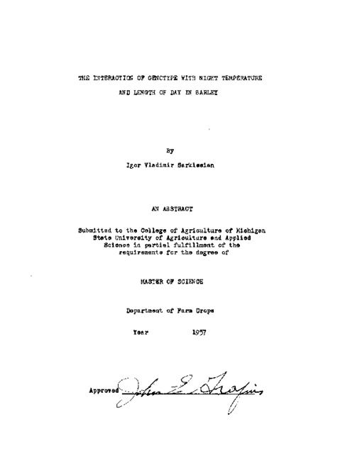 The interaction of genotype with night temperature and length of day in barley