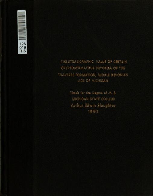 The stratigraphic value of certain Cryptostomatous Bryozoa of the Traverse formation, middle Devonian age of Michigan