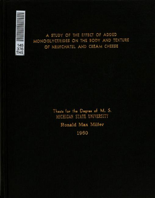 A study of the effect of added monoglycerides on the body and texture of Neufchatel and cream cheese