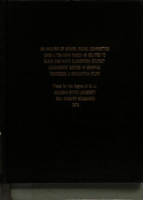 An analysis of school racial composition over a ten year period as related to black and white elementary student achievement scores in Memphis, Tennessee : a replication study