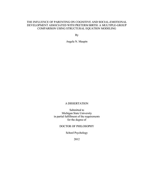 The influence of parenting on cognitive and social-emotional development associated with preterm birth : a multiple-group comparison using structural equation modeling
