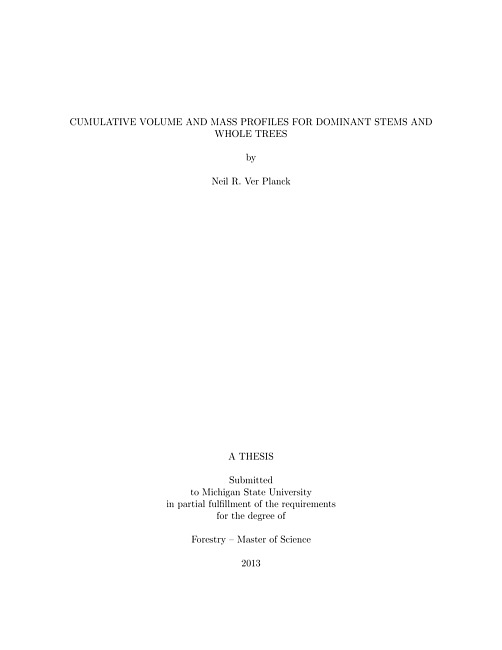 Cumulative volume and mass profiles for dominant stems and whole trees