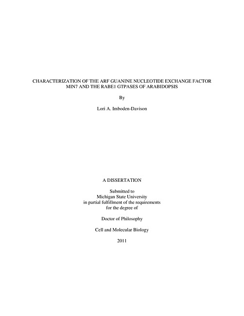 Characterization of the ARF guanine nucleotide exchange factor MIN7 and the RabE1 GTPases of Arabidopsis