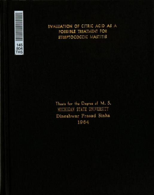 Evaluation of citric acid as a possible treatment for streptcoccic mastitis
