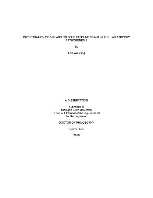 Investigation of LIX1 and its role in feline spinal muscular atrophy pathogenesis