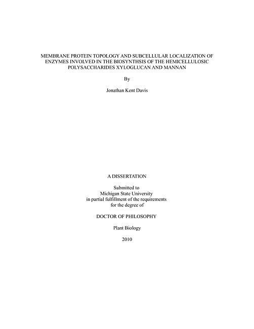 Membrane protein topology and subcellular localization of enzymes involved in the biosynth[e]sis of the hemicellulosic polysaccharides xyloglucan and mannan