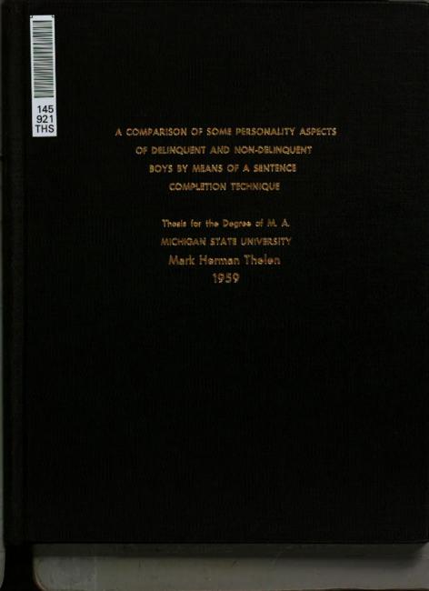 A comparison of some personality aspects of delinquent and non-delinquent boys by means of a sentence completion technique