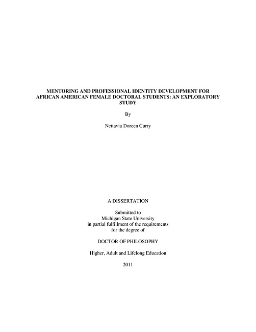 Mentoring and professional identity development for African American female doctoral students : an exploratory study