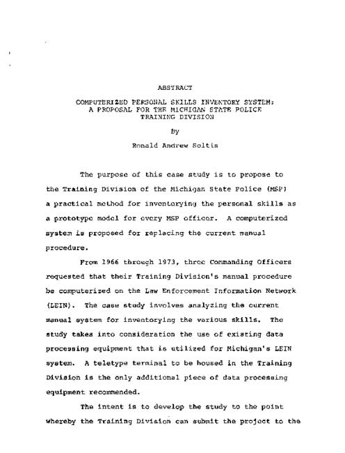 Computerized personal skills inventory system : a proposal for the Michigan State Police Training Division