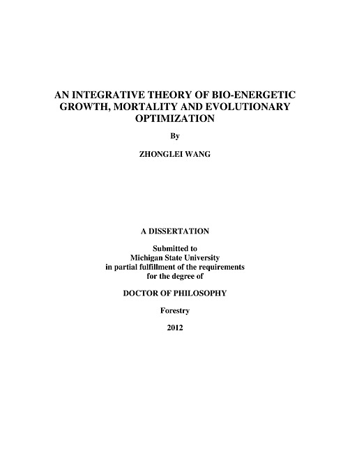 Growth is a universal energetic phenomenon for all living organisms, and is undertaken by meristemetic and stem cells through energy metabolism. Most growth processes can be modeled with a sigmoidal function, meaning that early growth is near exponential and later growth declines with age or time until at a certain point (i.e., maturity), when evolutionary optimization is realized and a species should turn all or part of its growth energy into reproduction and then death occurs, consequently. This is usually called a life history process. Evolutionary optimization means that fitness should be supposedly maximized during this process for all species, but how it is realized for all species is still a challenge or gap in our knowledge. This dissertation is dedicated to fill this gap.First, a general bio-energetic growth theory is presented here that assumes a dynamic universal energy pattern: a constant energy income rate deceleration with each cell reproduction, and a species- or clade-constant maintenance cost of cells. This pattern can produce the observed power relationships between energy metabolism and body size as described in Kleiber's law and the von Bertalanffy growth function. Secondly, the new growth theory and a related new bio-energetic definition of mortality are combined with a typical evolutionary optimization process to predict that maturity should begin when net energy income rate equals to the maintenance cost for all living activities and that maintenance cost per mass integrated till maturity should be a defined constant. Two fish life history datasets were used to test the new theory, and the result supported the predicted relationships well. Thirdly, because leaves are the basic functional modules of plants, a comparable evolutionary life history theory for the leaf is developed. The theory predicted a similar energy equilibrium status between energy income (photosynthesis) and expenditure (maintenance) for mature leaves. A global leaf physiological trait dataset (GLOPNET) was used to test this prediction, and a large proportion of variation in photosynthesis of diverse mature leaves is explained (R2 = 87% on mass-based metrics). Lastly, it is suggested that through an established relationship between leaf photosynthesis and seed energy income, there should also be an allometric relationship between leaf photosynthesis and seed mass. Using a large database of leaf traits and matched seed mass for the same species, it was shown that though a relatively small proportion (20%) of seed mass variation was explained by leaf photosynthesis, the predicted relationship is still generally supported.