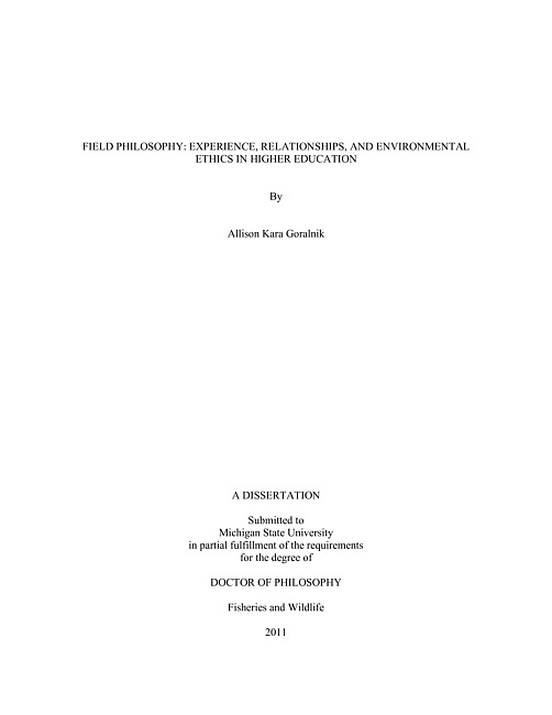 Field philosophy : experience, relationships, and environmental ethics in higher education