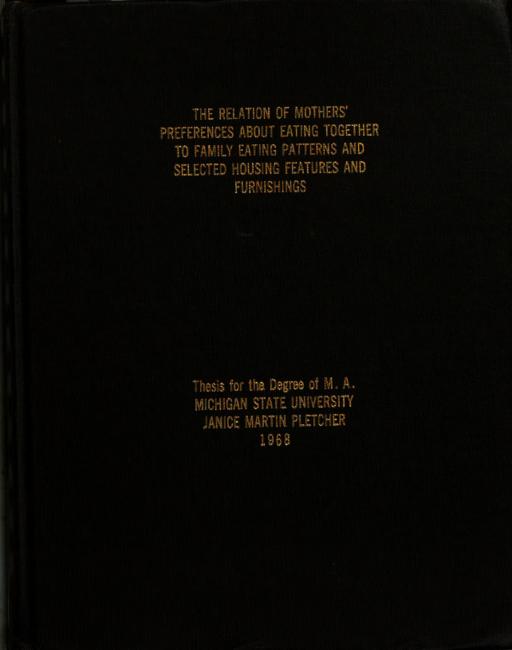 The relation of mothers' preferences about eating together to family eating patterns and selected housing features and furnishings
