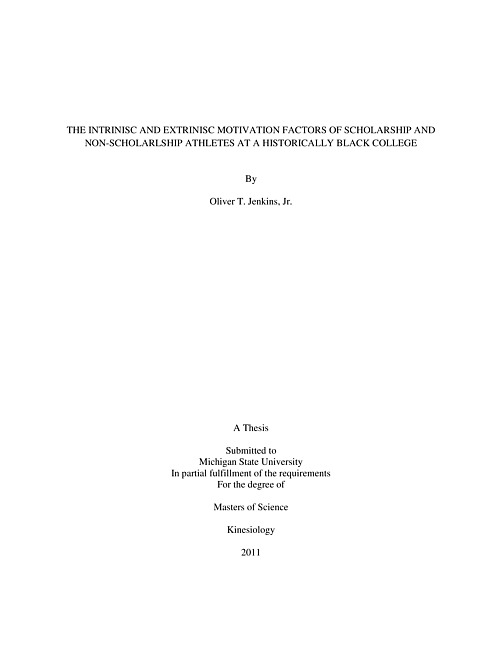 The intrinisc [i.e. intrinsic] and extrinisc [i.e. extrinsic] motivation factors of scholarship and non-scholarlship athletes at a historically Black college