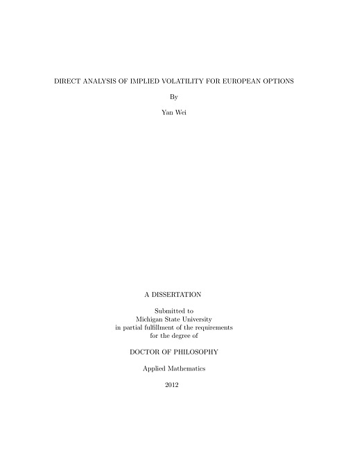 Direct analysis of implied volatility for European options