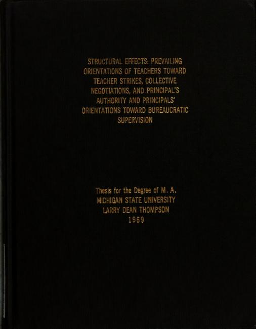 Structural effects : prevailing orientations of teachers toward teacher strikes, collective negotiations, and principal's authority and principals' orientations toward bureaucratic supervision