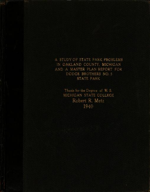 A study of state park problems in Oakland county, Michigan & a master plan report for Dodge brothree no. 5 state park