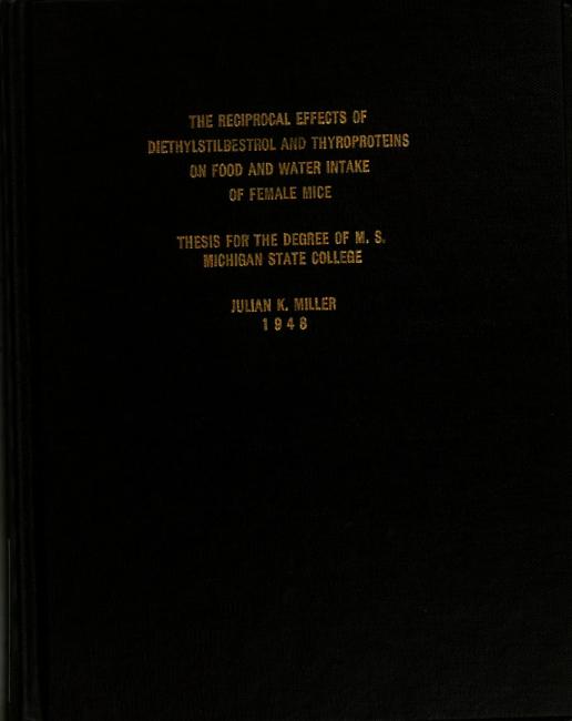 The reciprocal effects of diethylstilbestrol and thyroproteins on food and water intake of female mice