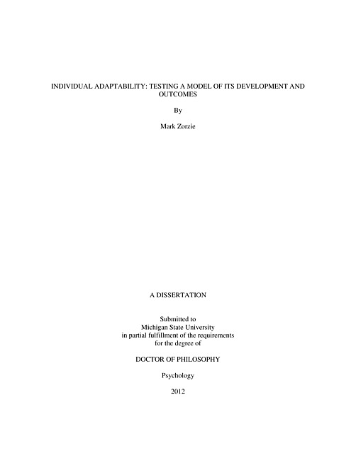 Individual adaptability : testing a model of its development and outcomes