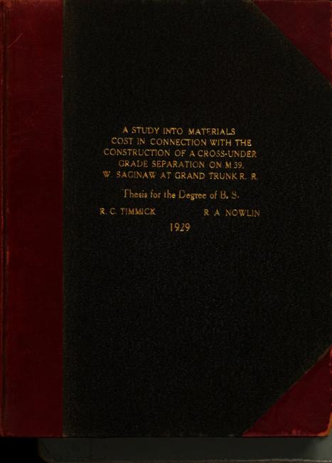 A study into materials cost in connection with the construction of a cross-under grade separation on M39, W. Saginaw at Grand Trunk R.R