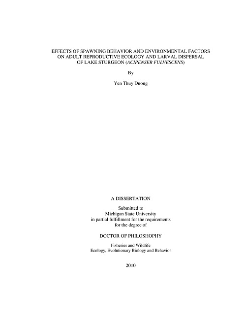 Effects of spawning behavior and environmental factors on adult reproductive ecology and larval dispersal of Lake Sturgeon (Acipenser fulvescens)