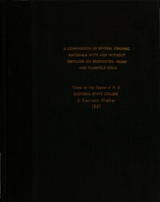 A comparison of several organic materials with and without fertilizer on Brookston, Miami, and Plainfield soils