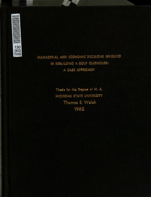 Managerial and economic decisions involved in rebuilding a golf clubhouse : a case approach