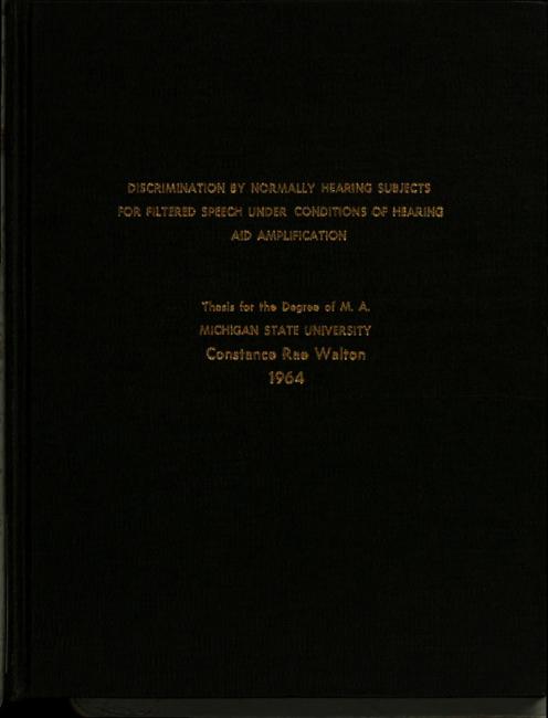 Discrimination by normally hearing subjects for filtered speech under conditions of hearing aid amplification