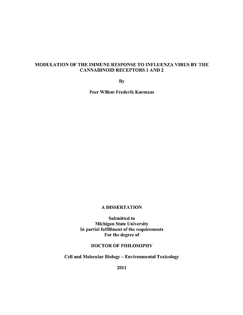 Cannabinoids are bioactive signaling molecules exerting several effects, including modulation of immune function. One of the agents studied for its immunosuppressive activity, Δ9-tetrahydrocannabinol (Δ9-THC), is thought to exert part of its activity on immune cells via interaction with cannabinoid receptors 1 (CB1) and 2 (CB2). In previous studies Δ9-THC caused an increase in steady state viral hemagglutinin RNA levels, suggesting decreased viral clearance due to compromised immune function. In addition, in CB1 and CB2 double knock out (CB1-/-CB2-/-) mice, a reduced viral burden and greater magnitude in the immune response were observed, suggesting a role for CB1 and/or CB2 in regulating immune function. The identity of the functionally dysregulated immune population(s) as a result of CB1 and CB2 deletion were unknown. In addition, the effect of Δ9-THC treatment on the cellular immune response to influenza remained to be elucidated. Overall, this dissertation project was designed to test the hypothesis that Δ9-THC suppresses immune responses generated by influenza virus by perturbing an endogenous signaling pathway relying in part on the presence of CB1 and/or CB2. In the present studies, Δ9-THC suppressed cytotoxic T lymphocyte (CTL) function independent of CB1 and CB2, suggesting an alternate mechanism for immune modulation by Δ9-THC in these cells. Second, a kinetic study of influenza infection demonstrated greater immune response magnitude in CB1-/-CB2-/- compared to WT mice. This was evidenced by elevated steady-state mRNA levels for genes involved in the inflammatory response, earlier T cell activation, greater percentages of cytokine-secreting effector cells, and increased immunopathology in lung tissue. These events likely lead to lower viral burden at the expense of greater tissue damage in CB1-/-CB2-/- mice compared to WT. These differences observed in vivo were not reproduced by stimulation of T cells in vitro, suggesting differences in antigen presenting cells (APC), which elicit effector cells. Dendritic cells (DC) generated from bone marrow (bmDC) and alveolar macrophages (AM) isolated from CB1-/-CB2-/- mice had greater maturation with and without Toll-like receptor (TLR) stimulation compared to WT mice and bmDC elicited antigen-specific T cells without the need for a maturation stimulus. Third, focusing on the peak day of the inflammatory response induced by influenza virus at day 3, the immune response of APC was characterized in WT and CB1-/-CB2-/- mice in the presence of Δ9-THC. Δ9-THC suppressed influx of APC, including conventional DC (cDC), plasmacytoid DC (pDC), and AM into the lung after influenza infection in WT only. While there was no change in maturation of lung-isolated APC due to Δ9-THC treatment, only mature APC reach the lung, thus Δ9-THC might have affected maturation of APC prior to migration to the lung. Indeed, Δ9-THC suppressed DC maturation and ability to elicit antigen-specific T cells in vitro. Taken together, Δ9-THC impairs the immune response to influenza, in part, by suppressing APC function in a CB1 and/or CB2 dependent manner, while suppressing CTL elicitation in a CB1 and CB2 independent manner. Also, the presence of CB1 and/or CB2 on APC prevents exacerbated immune responses after influenza infection. These studies suggest that CB1 and/or CB2 maintain immune homeostasis and prevent excessive reactivity after immune stimulation.